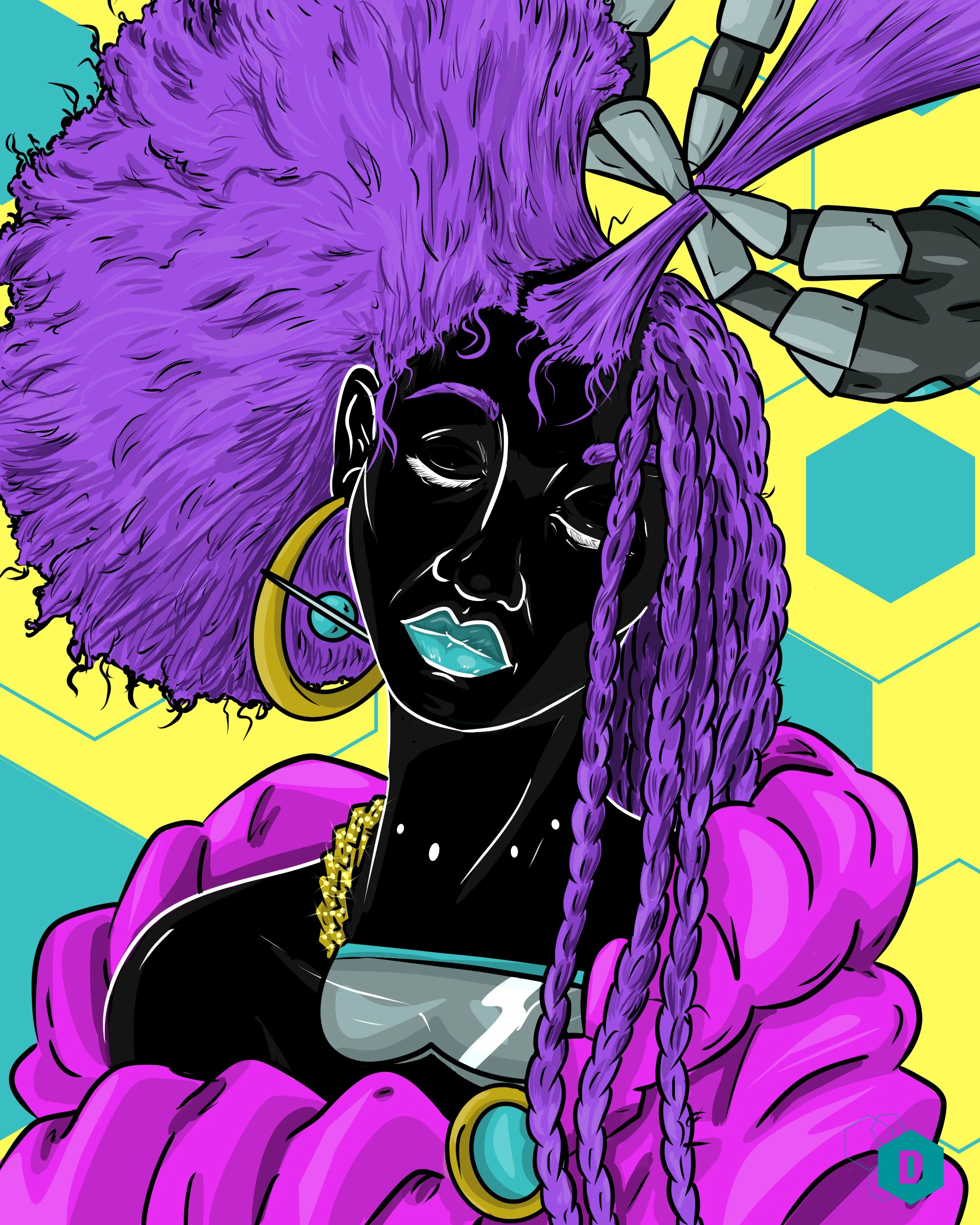 In the throes of the pandemic, I needed to fuel my creativity. For years, I told myself to launch my art business. In April 2021, I finally made the courageous decision to take that leap of faith and launch DorianTroy Studios — a creative house that channels my freedom of expression, stories, and experiences into art to share with the world. This launch was accompanied by the release of my first limited edition print collection, AfroCare 2178, which explores the beauty of black haircare through an Afrofuturist lens. These premiere pieces inspired many future projects, including AfroCare 2178 in Black and White and my 2025 collection, Man on the Moon.